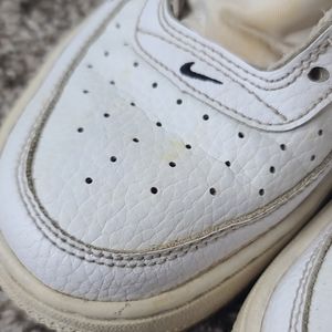 Air force one LV8 Utility GS Overbranding low cut youth boys size 4.5 shoe. Part number AR 1708-100. White with black accents. See pictures for condition. They will come as seen with no shoe laces.