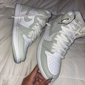 Nike Air high-top sneakers in a fresh white and mint green design. Ideal for everyday style.