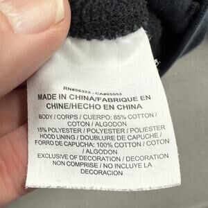 Material: Body 85% cotton, 15% polyester; hood lining 100% cotton
