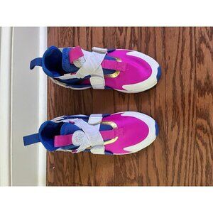 Nike Air Huarache City Racer Blue Fuchsia Blast Gs AJ6662-401 Size 4Y. Good condition but does have some discoloration on the fabric portions of the shoes as you can see in photos. May wash out, but haven’t tried. Otherwise in great condition!