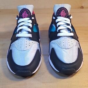 These Nike sneakers feature a sleek black and white design, complemented by a neoprene sock-like fit for ultimate comfort. The external support structure provides stability, while the chunky sole adds a modern touch. Crafted from a blend of mesh, leather, and synthetic materials, these sneakers are perfect for everyday wear.