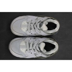 Nike Air Huarache Run TD Triple Gray Running Toddler sneakers in size 7C. These Unisex Baby & Toddler athletic shoes feature a retro sports style, with a synthetic upper material and a sneaker design. They are suitable for walking, cross-training, and running, making them a versatile choice for active toddlers. Made by Nike, these sneakers are part of the Huarache product line.