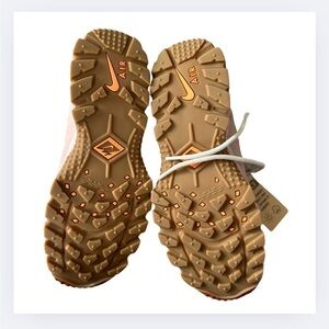 Nike's Air Humara "Future Movement - Dark Russet" sneakers have an earth-tone colourway. Here, the upper features a Peach Cream ripstop-like base with Dark Russet nubuck overlays, and is enhanced with a debossed geometric pattern panel. A burnt orange hue is found on the nylon straps that reinforce the shoe's upper on the sides, while a Peach Cream leather Swoosh finishes the look.