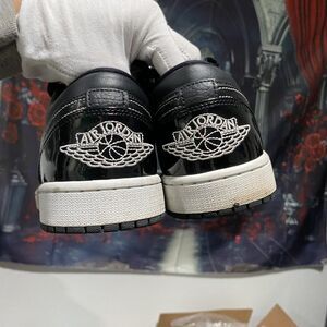 Step into timeless sneaker history with the Nike Air Jordan 1 Low All Star a sleek 2021 release that blends classic hoops heritage with modern streetwear energy. Featuring glossy patent leather overlays, carbon fiber-textured panels, and crisp white midsoles, this pair delivers luxury vibes and everyday comfort. Perfect for collectors, sneakerheads, or anyone chasing that clean black-and-white Y2K drip. Jordan Wings logo on the heel and Jumpman branding on the tongue complete the iconic look. Preowned, gently worn please view all photos for full condition details. Essential for rotations built around old money, skater, or athletic street fashion aesthetics.