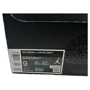 Nike Air Jordan 1 Low SE Craft Mens Size 9 Tech Grey Black Cement DZ4135 002