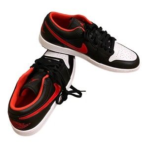 Nike Air Jordan 1 Low White Toe Shoes Black Fire Red 553558-063 Men's NEW.
