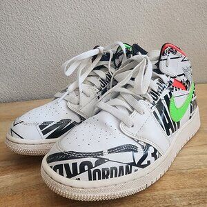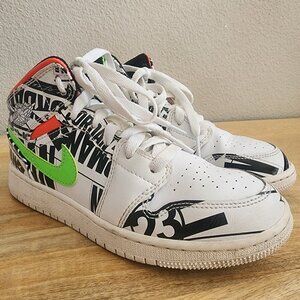 Nike Air Jordan 1 Mid All Over Print Logos Boys Size 4Y 554724-119
