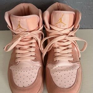 Nike Air Jordan 1 Mid Coral Gold Sneakers Mens 6.5 Womens 8.5 Stardust Pink 2016