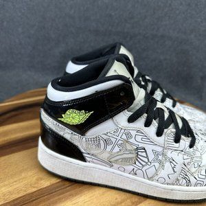 Nike Air Jordan 1 Mid DIY GS Size 5Y DC4099-100 White Black Volt 2021