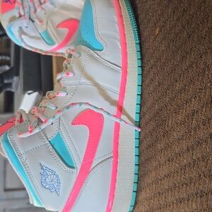 Nike Air Jordan 1 Mid Pink, Teal & White sneakers EXCELLENT USED CONDITION