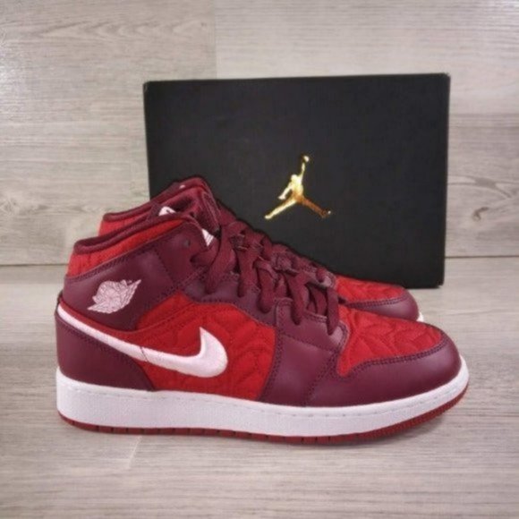 Elevate your sneaker game with these striking Nike Air Jordan 1 Mid Red Quilt Sneakers. They come in a youth size 6Y, which perfectly fits women's 7.5.