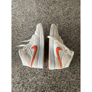 Elevate your casual style with these Nike Air Jordan 1 Mid SE Corduroy sneakers. Featuring a mid-top shoe shaft style, lace-up closure, and sail/orange-orange quartz colorway, these sneakers are perfect for any casual occasion. The synthetic lining material and rubber outsole material ensure durability and comfort, making them an ideal choice for everyday wear.