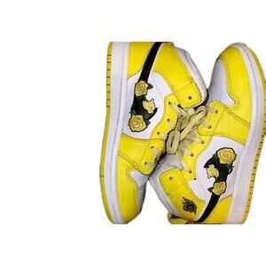 Nike Air Jordan 1 Mid SE GS Floral Rose Yellow Sneakers Size 3Y
