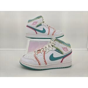Nike Air Jordan 1 Mid SE GS White Teal Multi Stitch Retro DM6218-100 6Y 7.5W 6M
