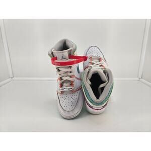Step up your sneaker game with these stylish Nike Air Jordan 1 Mid SE GS sneakers! These eye-catching shoes feature a white base with a teal swoosh and multicolor stitching, making them a unique addition to your collection. Perfect for both casual wear and athletic activities. Grab them now and elevate your look!