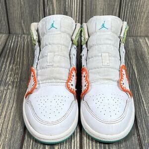 Nike Air Jordan 1 Mid SE Girl Multi Knit Sneaker Basketball Shoes White Sz 1Y