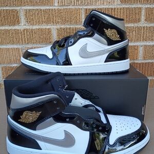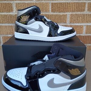 Nike Air Jordan 1 Mid SE Shoes Black Metallic Silver White Men's NEW