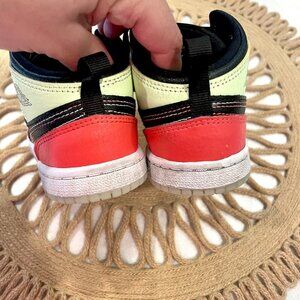 These are gently used Nike Air Jordan 1 Mid Se GS Trainers Av5174 Sneakers Shoes Black Ember Glow Barely Volt 076 Size 10C. In very good condition. Minor signs of wear throughout. See all pics for condition.