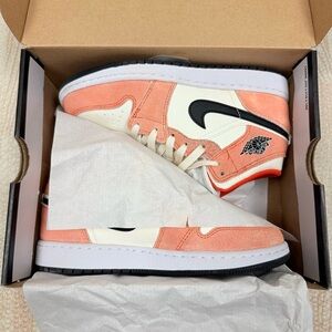 Nike Air Jordan 1 Mid Se (Gs) Team Orange-Black Sz 4Y-Womens Sz 5.5 [DV1336-800]