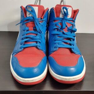 Nike Air Jordan 1 Mid Shoes Mens Size 15 Blue Red White Basketball 551724-407