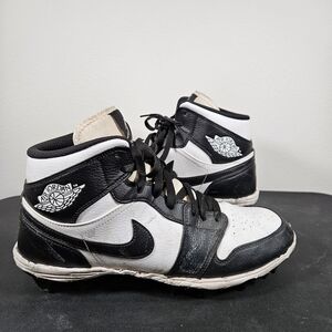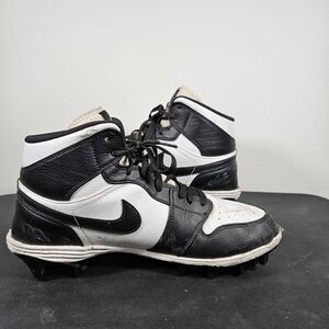Nike Air Jordan 1 Mid TD Football Cleats Mens Size 11.5 Black White FJ6805-100