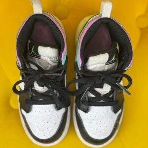 Nike Air Jordan 1 Mid TD Size 9C Pastel Black Volt Green Glow shoes.