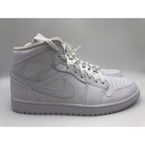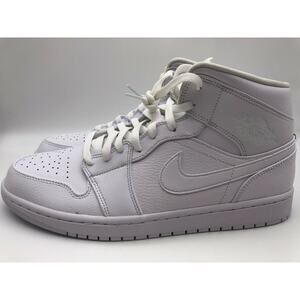 Nike Air Jordan 1 Mid Triple White 554724-129 Men's Shoe 14 NEW