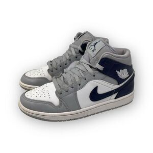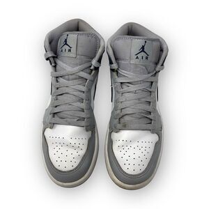 Nike Air Jordan 1 Mid White Wolf Grey Navy Basketball Shoe Men Size 8 DQ8426-104