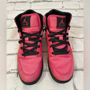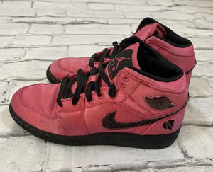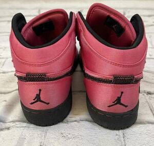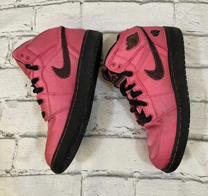 This Nike Air Jordan 1 Phat GS 'Spark Black' sneaker in a hot pink color is a must-have for any sneakerhead. It features a round toe shape and lace-up closure.