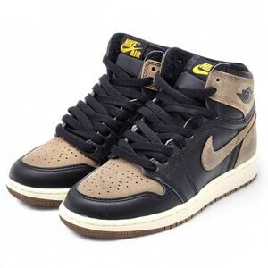 Step up your sneaker game with these Air Jordan 1 Retro High OG (GS) sneakers in the striking Palomino (Medium Brown/Black) colorway. Featuring a premium mix of leather and suede with classic Nike Air branding, this grade school-sized Jordan 1 is a must-have for any young sneaker enthusiast or collector.