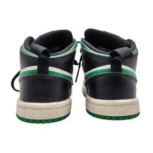 These Nike Air Jordan 1 Retro High OG sneakers in Pine Green and Black are designed for children. They offer a stylish, classic look with durable construction, providing comfort and support for little feet during play and everyday activities.