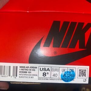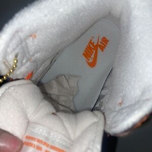 This women's Air Jordan 1 OG Starfish also boasts a woven Nike Air tag embellishing a lightly padded nylon tongue in a vintage off-white finish. The aged aesthetic is repeated on the rubber midsole of the sneaker, fitted with an encapsulated Air-sole unit in the heel and supported underfoot by an orange rubber outsole.
