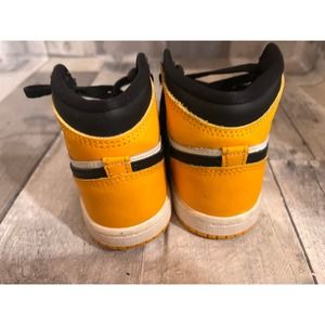 Nike Air Jordan 1 Retro High Top Sneakers Taxi Yellow Leather Kids Sz 8C
