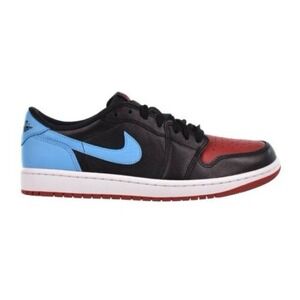 Elevate your sneaker game with these stylish Air Jordan 1 Retro Low OG NC to Chi sneakers. These sneakers feature a low top style with a cushioned, breathable and comfortable design. The multicolor sneakers are made with leather and have a standard shoe width.