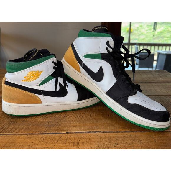 Nike Air Jordan 1 Retro Mid SE Oakland Shoes Sneakers Green Yellow Mens Size 13