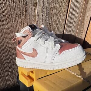 Nike Air Jordan 1 Satin Mid Shoes Toddler 8C White Rose Gold Pink 644507-190