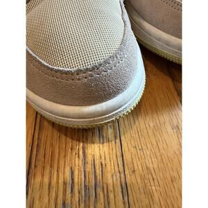 Upper: Tan/beige suede with breathable mesh panels and mesh cutout Swoosh