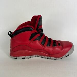 Preowned. Nike conversion chart- these will also fit a women's 8 or a mens 6.5. Get ready to step up your shoe game with these Nike Air Jordan 10 Retro 'Bulls Over Broadway' sneakers. These high-top shoes feature a round toe shape and lace-up closure, making them perfect for any casual or activewear occasion. The red leather upper material is accented with the iconic Nike logo and solid pattern, giving these shoes a classic retro look. The rubber outsole material provides moderate cushioning and comfort, making them suitable for gym and training, school, and basketball activities. These shoes are available in US size 6.5 and UK size 6, with an EU size of 39. They are perfect for boys who want to add a stylish touch to their wardrobe. Get your hands on these Nike Air Jordan 10 Retro sneakers and step out in style!