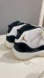 Jordans/ Stylish high-top sneakers in white and black. Perfect for casual wear.