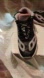 Stylish sneakers featuring a black and white design with red accents. Perfect for casual wear.