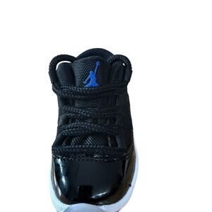 Nike Air Jordan 11 Retro Low TD 'Space Jam' Sleek black sneakers with blue accents. Perfect for active kids. Durable and stylish design. The the Air Jordan 11 Retro Low PS ‘Space Jam’ showcases the same sleek design worn by Michael Jordan in his 1996 cinematic debut.🔥🔥🔥