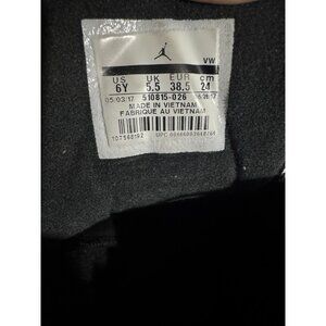 The Nike Air Jordan 12 Retro GS in size 6Y women’s size 7.5 Black Deadly Pink is a stylish and versatile sneaker perfect for any young sneakerhead. Featuring a mid-top design with a retro theme, this shoe offers both comfort and performance for activities like basketball and walking. With a breathable and cushioned construction, these athletic shoes are suitable for all seasons and can be worn by any age who appreciate the iconic Jordan brand. The shoe features a black tumbled leather upper contrasted by a basketball-textured mudguard in a vibrant Deadly Pink. It includes small hits of metallic silver on the eyelets. Step up your game with these iconic Air Jordan 12 Retro GS sneakers. Note: some wear in heal and one set of metal lace hooks missing but doesn’t affect functionality and not noticeable when wearing pants.