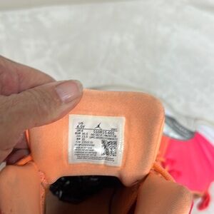 Vibrant Jordan athletic shoes for women. Features bold pink and orange panels with silver accents. Comfortable and stylish design. See all photos as they are part of description