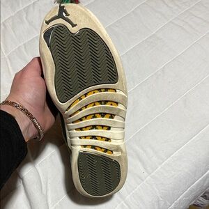 Nike Air Jordan 12 Retro Green and White Sneakers with Textured Leather