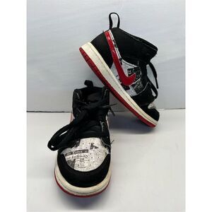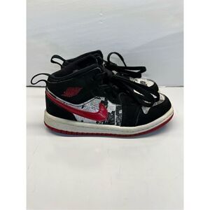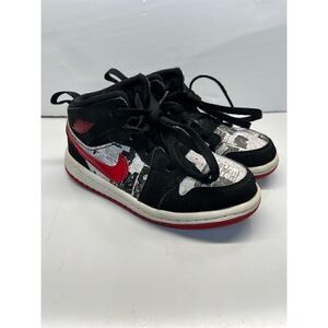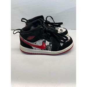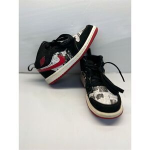 Nike Air Jordan 1 Mid SE Kids Size 9C BQ6933 061 Black Gym Red White Newspaper