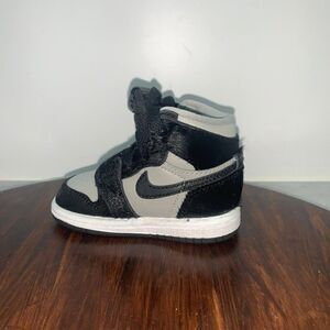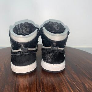 The faux fur upper material adds a touch of luxury, making these shoes perfect for both everyday wear and for basketball activities. The shoes are part of the Air Jordan product line, showcasing the quality and craftsmanship associated with the Jordan brand. Don't miss out on these stylish sneakers for your little boy or girl.