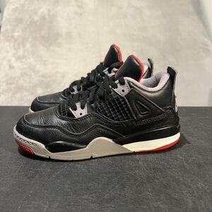 Nike Air Jordan 4 Retro Shoes Youth Size 13.5C Black Red Cement BQ7669-006 OG