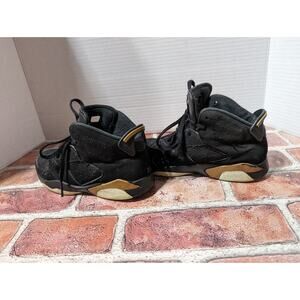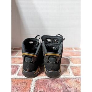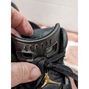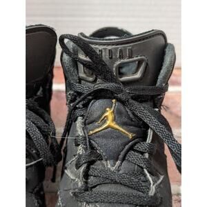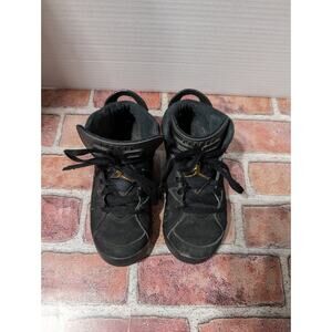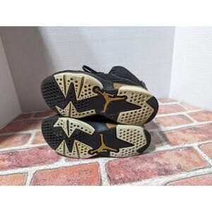 Elevate your child's sneaker game with the Nike Air Jordan 6 Retro PS 'Defining Moments' 2020 CT4965-007 in size 12C. This mid-top sneaker features a round toe, lace-up closure, and a cushioned insole for ultimate comfort. The black/gold nubuck upper material is accented with the iconic Jordan logo, making it a stylish addition to any outfit.