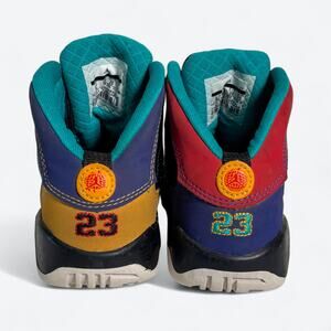 Toddler Air Jordan 9 Retro 90s Dream Do It TD Basketball Shoes from Nike in Black, Multicolor. Size 9C Details: - Style: 401812-065 - Material: Leather, Rubber - Size: 9C - Condition: Preowned - Good. Tags: toddler, kid, basketball, jordans, athletic, sport, fitness, high top