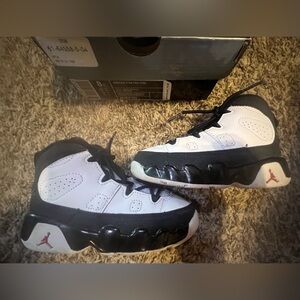 The Size 8c - Jordan 9 Retro space jam 2016 is a classic mid-top sneaker from the Air Jordan 9 model line. Released in 2016, this athletic shoe features a white colorway and the iconic silhouette of the Jordan 9 Retro space jam. With its memorable design and stylish appeal, this shoe is a must-have for any sneaker enthusiast or Air Jordan collector that wants their little one in style. 9 yr old pair of shoes in VERY nice shape with original box.